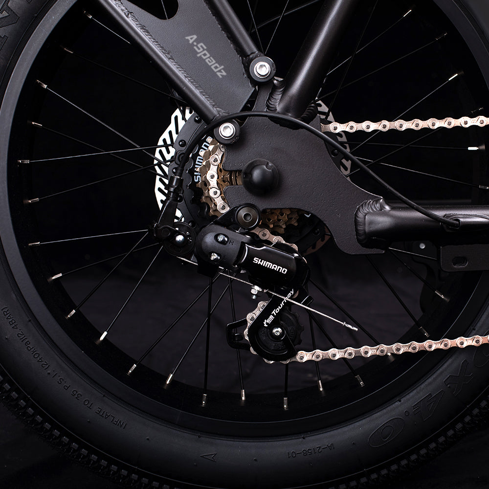 Cavet Air comes equipped with a Shimano 7-speed drivetrain for more efficiency to climb hills, roll around on trails and ride daster on flat surfaces.