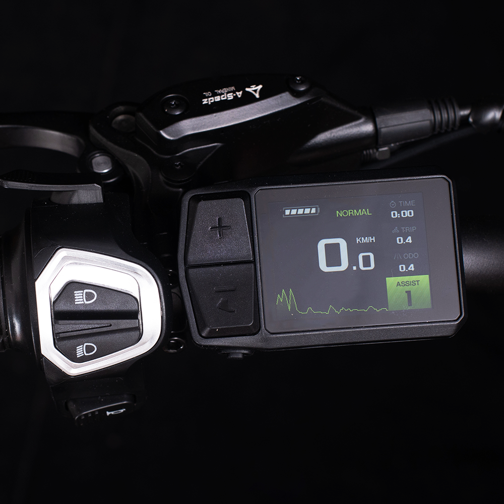 Featuring a smart, waterproof TFT display, this system provides effortless viewing and detailed ride data. Key features include battery usage (%), real-time speed and power tracking, trip distance and time, power level adjustment, and total distance calculation—enhancing every ride with clarity and precision.