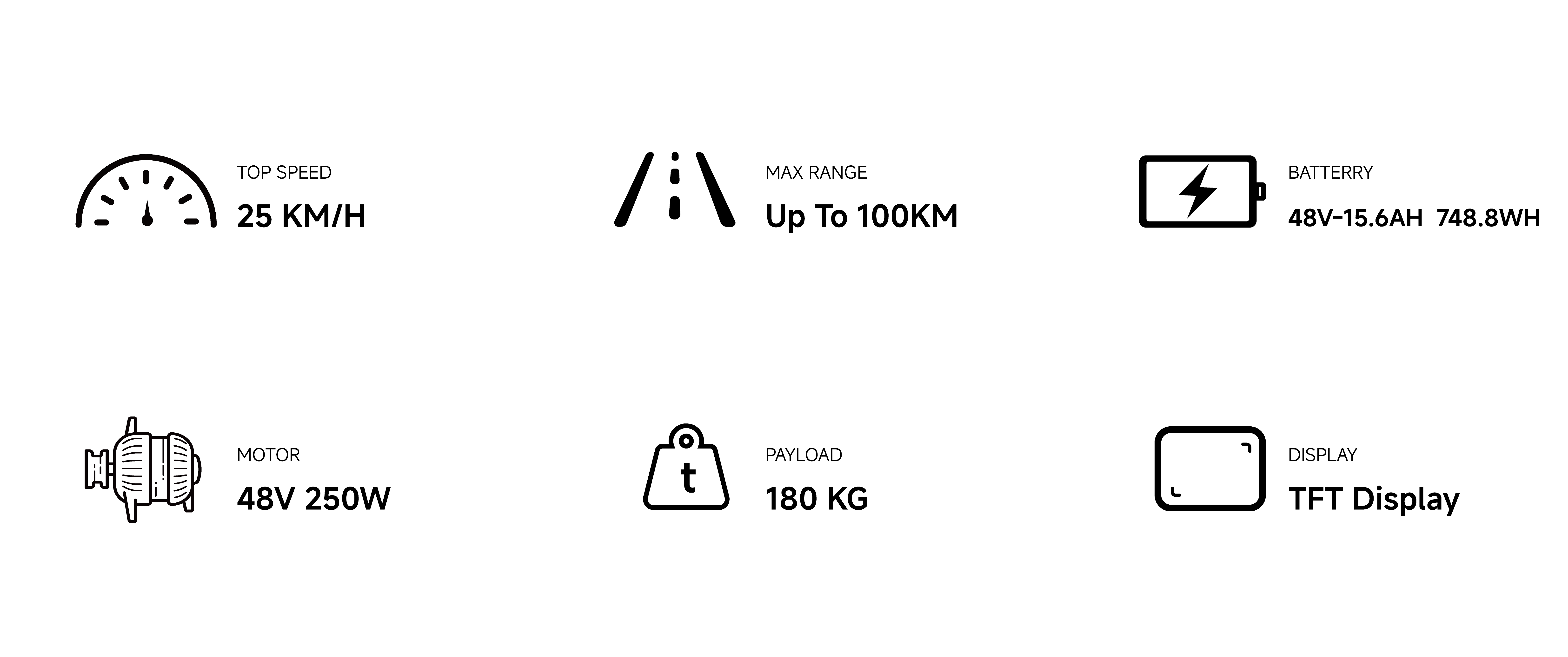 Equipped with high-energy density cells, the A-Spadz's battery delivers an impressive 100km range. Its certification and IPX7 waterproof rating ensure worry-free safety